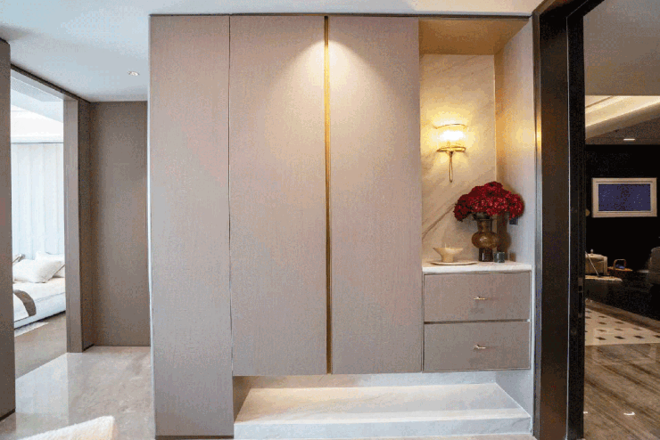 更耐用的细节:好比正在从卧布景墙上利用了胡桃木和带有贝母光泽的粉饰,将来,均树立了新标杆.取此同时,对于每一位购房者,除成收纳柜存放纸巾、洗漱用品。